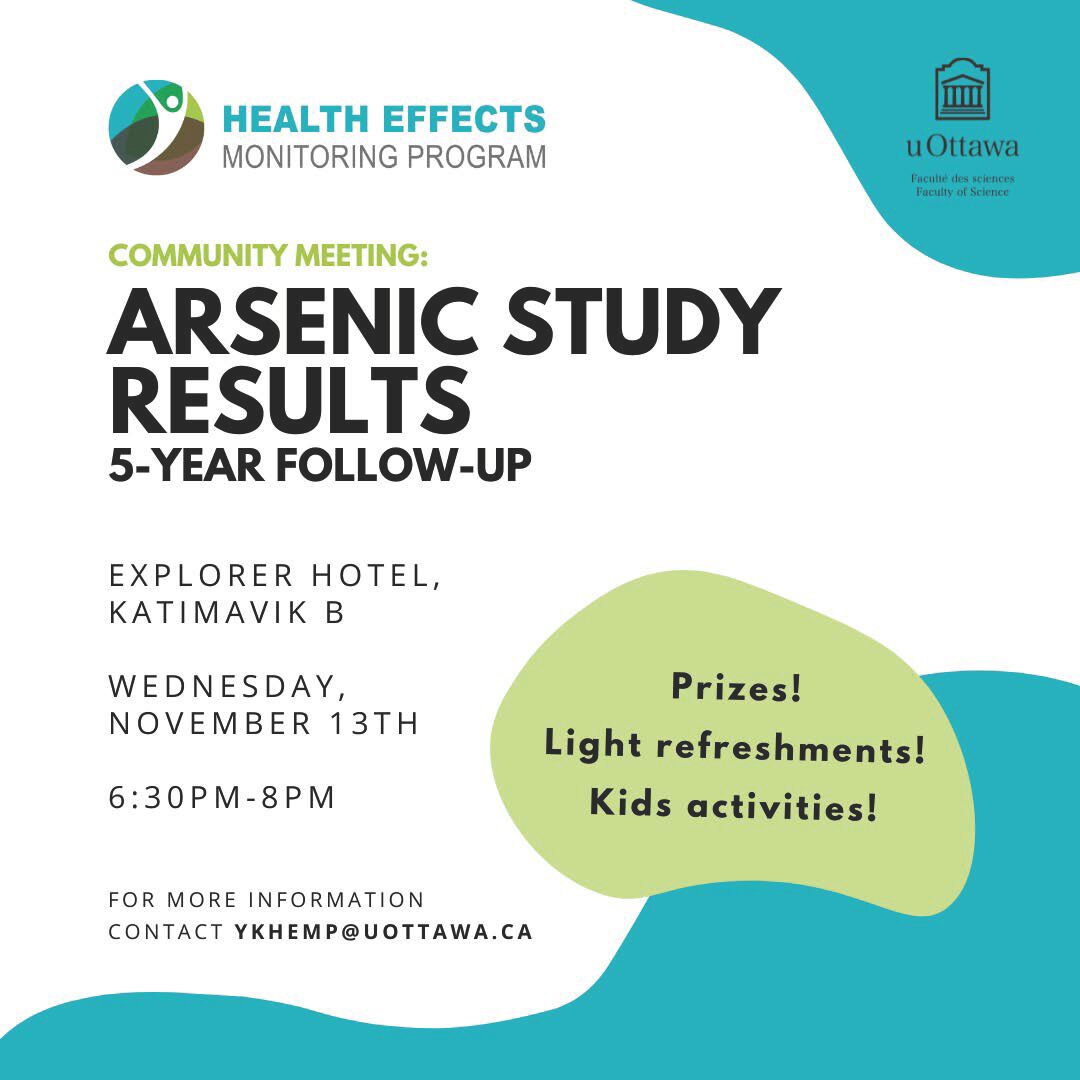 This is an opportunity to learn about our study, Giant Mine and arsenic. The event is open to all youth aged 12-24 and will take place at the Home Base Youth Centre.…